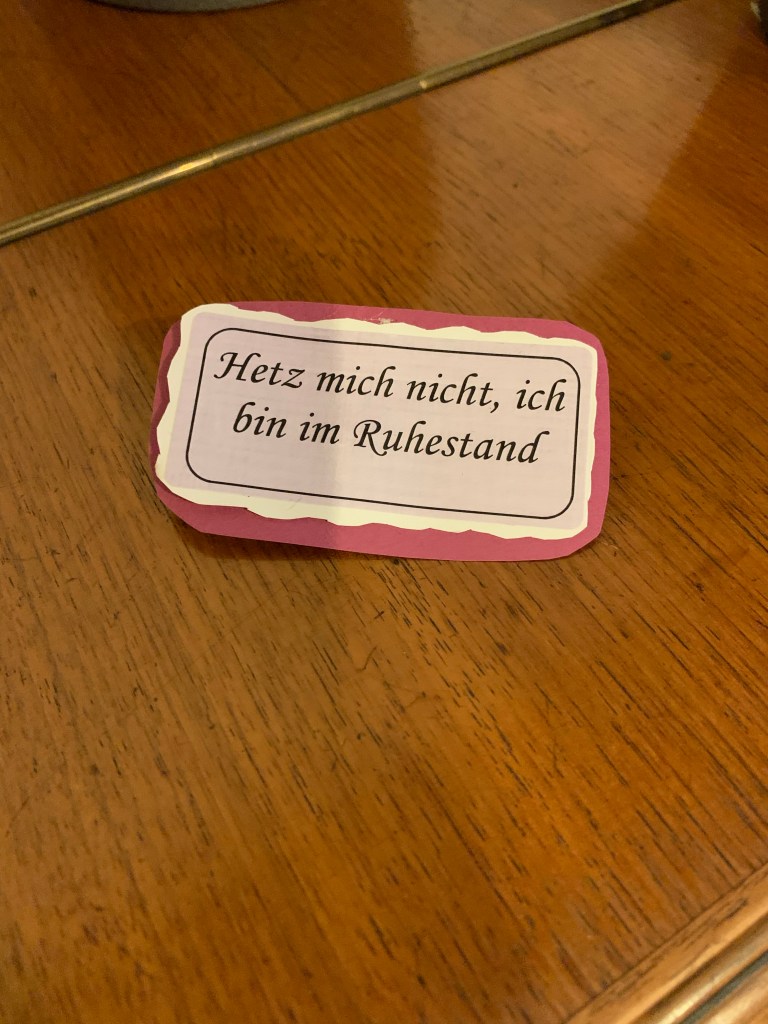 Da in dem Deckel der Hutschachtel noch soviel Platz war, hab ich ihr noch die Bedeutung über die Rente vom Duden ausgedruckt und eingeklebt.
