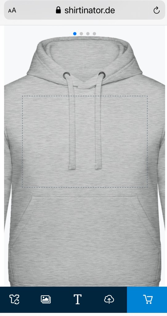 Hoodie wird automatisch in grau gezeigt, links bei dem Button mit dem T-Shirt kann man die Farbe wählen. Dann hat man die Möglichkeit ein voreingestelltes Motiv zu wählen, oder ein eigenes hoch zu laden. Wichtig ist das der “Regler” nach rechts geschoben wird, damit erlaubst du den Zugriff auf das Foto. Der Button “Bild hochladen” wird dann dunkelblau. Das Bild kann nun größer, kleiner, rechts oder links platziert werden. An den Armen oder am Rücken können auch noch Fotos hinzugefügt werden. Hab ich jetzt aber nicht gemacht. Vorne, fand ich reicht es. Ob es dann auch mehr kostet kann ich hierzu jetzt leider auch nicht sagen, das erfährt man bestimmt auf der Homepage. Es besteht auch die Möglichkeit einen Text hinzuzufügen. Den kann man natürlich auch noch nach Wunsch vergrößern, verkleinern usw. Nur noch die passende Größe wählen und ab in den Warenkorb. Die restlichen Schritte sind wie bei jeder normalen Online Bestellung, sprich Adresse, Zahlungsart usw.